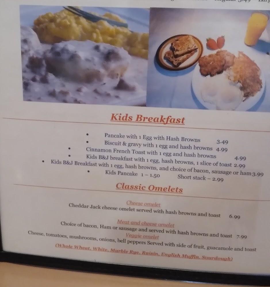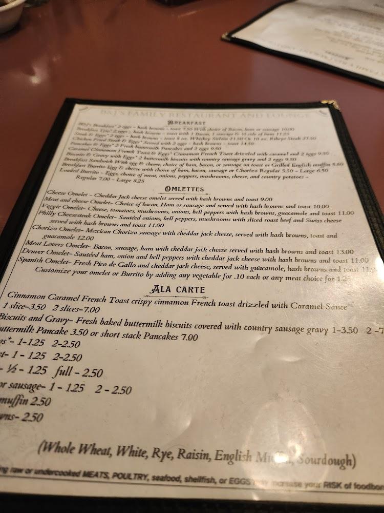 B&J's menu embodies classic American comfort food, featuring breakfast, lunch, and dinner options. Breakfast shines with choices like omelets, pancakes, and hash browns. The all-you-can-eat buffet on Sundays is a crowd favorite, making weekend brunch extra appealing.
