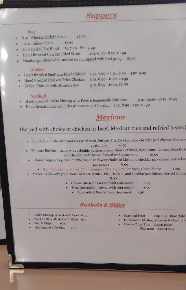 Appealing appetizers like cheesy fries and jalapeño poppers tempt diners before their main meals. Desserts provide a sweet end to every visit, with options ranging from ice cream to the rich double-layer chocolate cake. Each plate provides a comforting taste of home.